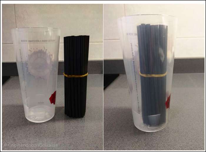 Para los gusanos necesitaremos unas cuantas pajitas y un vaso o recipiente alto donde quepan las pajitas.