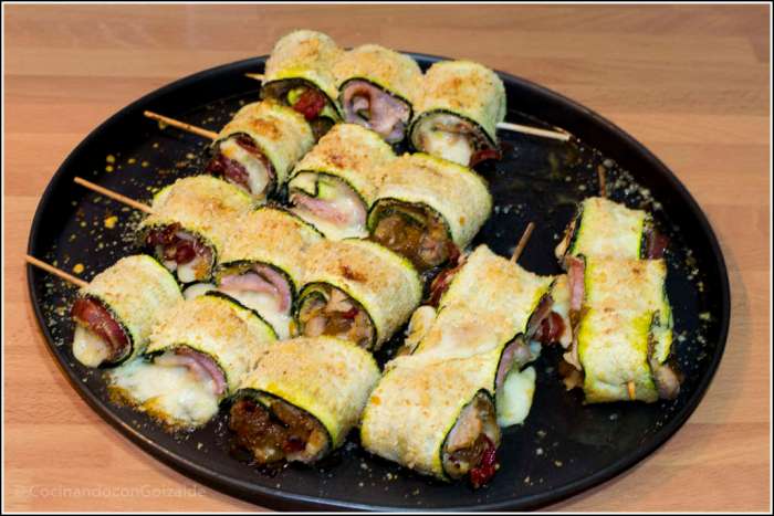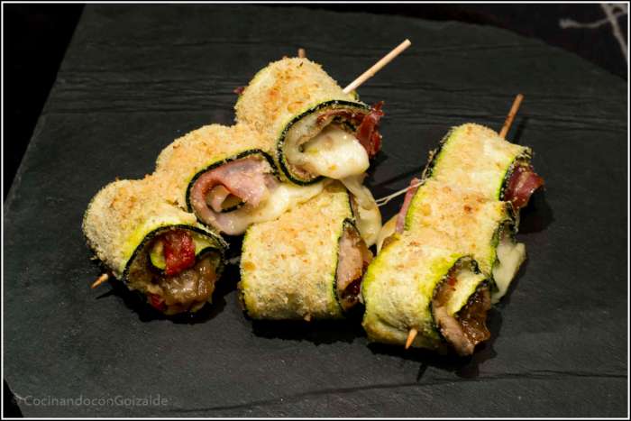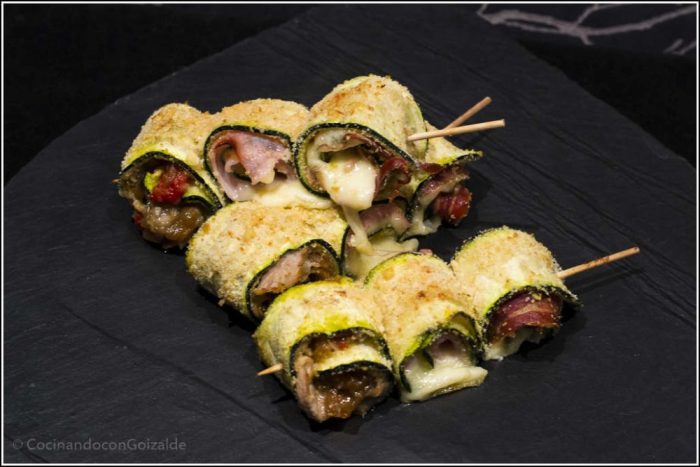 ROLLITOS DE CALABACIN, JAMON Y QUESO