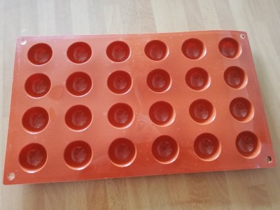 - Molde: elige el que más te guste. Los hay de plástico duro especiales para bombones y también de silicona como éste que yo he usado