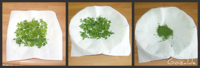 Es una forma muy fácil y práctica de «secar» el perejil, «picarlo» y conservar durante más de un mes en el frigorífico0.