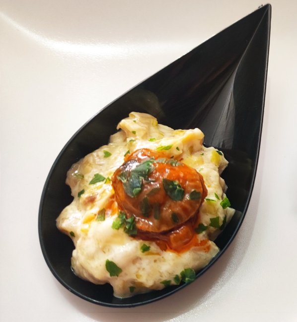 ZAMBURIÑAS SOBRE CAMA DE PUERRO Y NATA