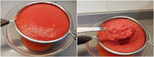 Una vez asados los tomates triturar con batidora o Thermomix (20 seg en vel 8). Poner a punto de sal.
