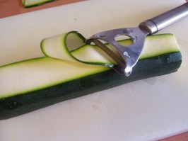 - Cuando elijáis tanto los calabacines como el pepino, escoged los más estrechos, para que al sacar las láminas el pelapatatas abarque todo el calabacín o pepino.