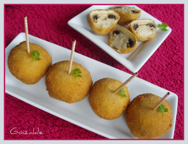 - harina, huevo batido y pan rallado aromatizado con ajo y perejil