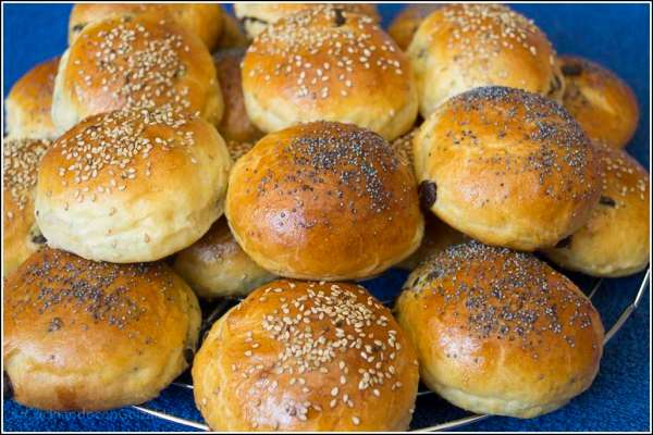 Se hacen en un momento, como su nombre indica. En menos de 2 horas tenemos pan casero, crujiente y a nuestro gusto. En este caso he utilizado harina integral y harina de fuerza al 50%, por eso tienen ese color oscurito. Los panes alargados llevan chorizo y los redondos los he espolvoreado de semillas de amapola y de sésamo.