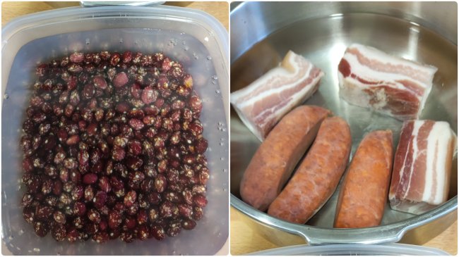 Así es como yo hago las alubias con sacramentos para que tengan todo el sabor y hagan el menor daño posible, bien por los gases (por eso las pongo 24 horas a remojo y añado una pizca de comino) como por la pesadez de la grasa de los sacramentos (los cuezo aparte, le quito la mayor parte de la grasa y cocino en ese caldo las alubias, aprovechando todo el sabor)