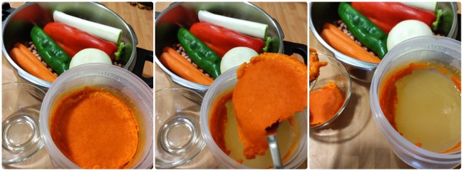 Añadir la cucharada de carne de pimiento choricero, 1 min, varoma, giro izq, vel cuchara.