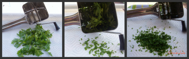 Es una forma muy fácil y práctica de «secar» el perejil, «picarlo» y conservar durante más de un mes en el frigorífico0.