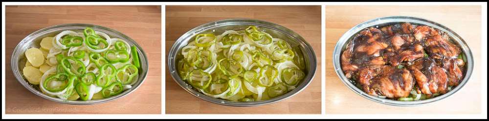 - Al marinar las patatas con las especias, aceite y sal, estas soltarán agua. Es normal. Se debe a que la sal extrae agua de la patata.